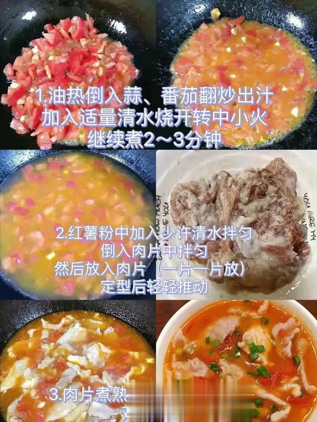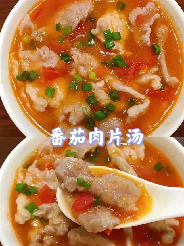 三、番茄肉片汤:酸爽开胃的“脾胃充电宝”
