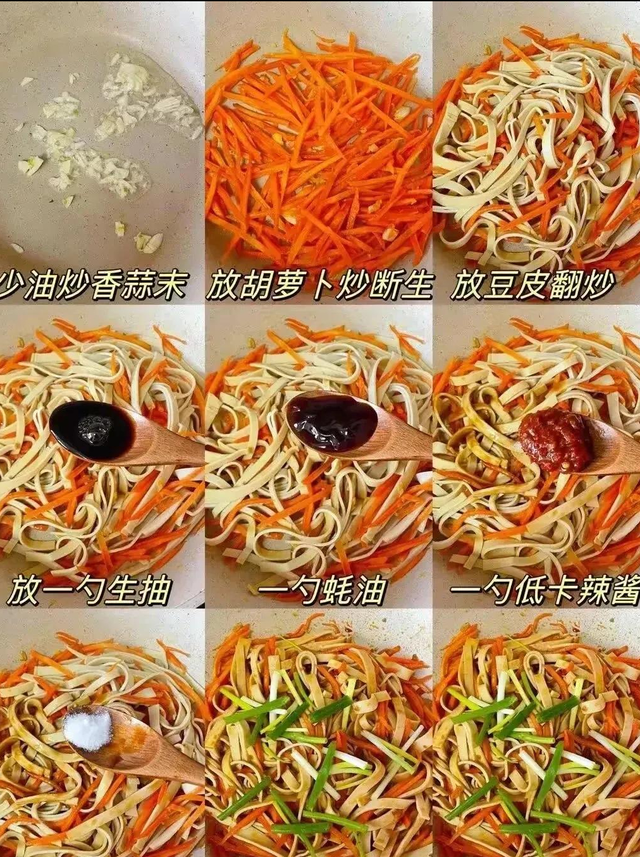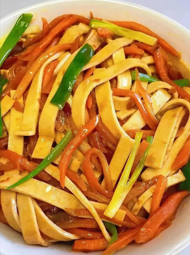 四、胡萝卜炒豆皮:素食界的“祛湿黄金搭档”