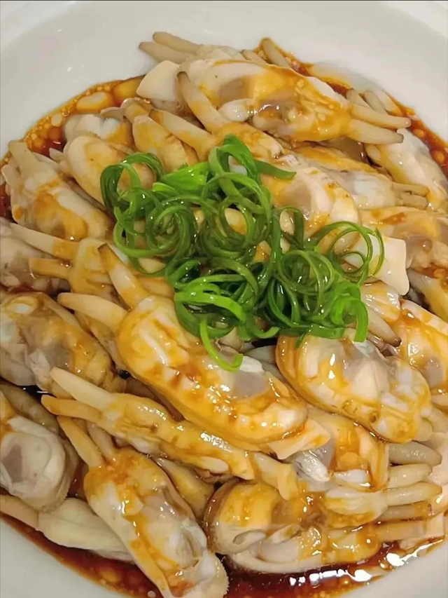 蛏子高蛋白低脂肪,淋上炸得喷香的葱油。