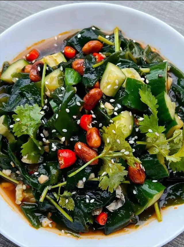 海带利水堪称“祛湿刀”,黄瓜清热像“小扫帚”,酸辣汁一拌,清爽得仿佛给肠胃冲凉!